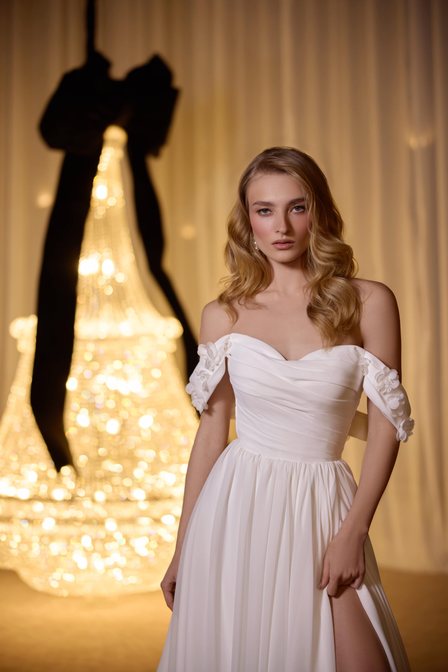 Olívia - Ejtett vállú muszlin menyasszonyi ruha